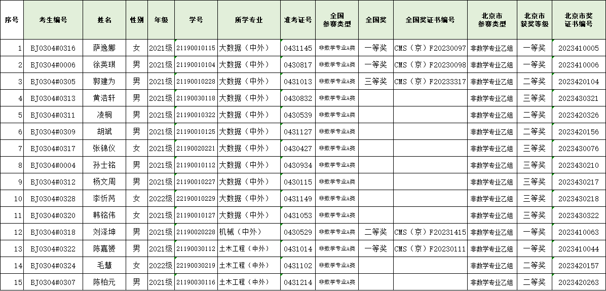 近日,北京市第三十四届老员工数学竞赛暨全国第十五届老员工数学竞赛预赛结果公布。公司112名考生在比赛中获得全国奖,其中一等奖20项,二等奖23项,三等奖69项。280名考生获得北京市级奖,其中一等奖72项,二等奖87项,三等奖121项(详见附件),获奖人数在同类院校中继续保持领先。此外,公司1名同学将作为北京赛区的参赛员工代表之一,参加将于2024年春季举行的全国第十五届老员工数学竞赛决赛。