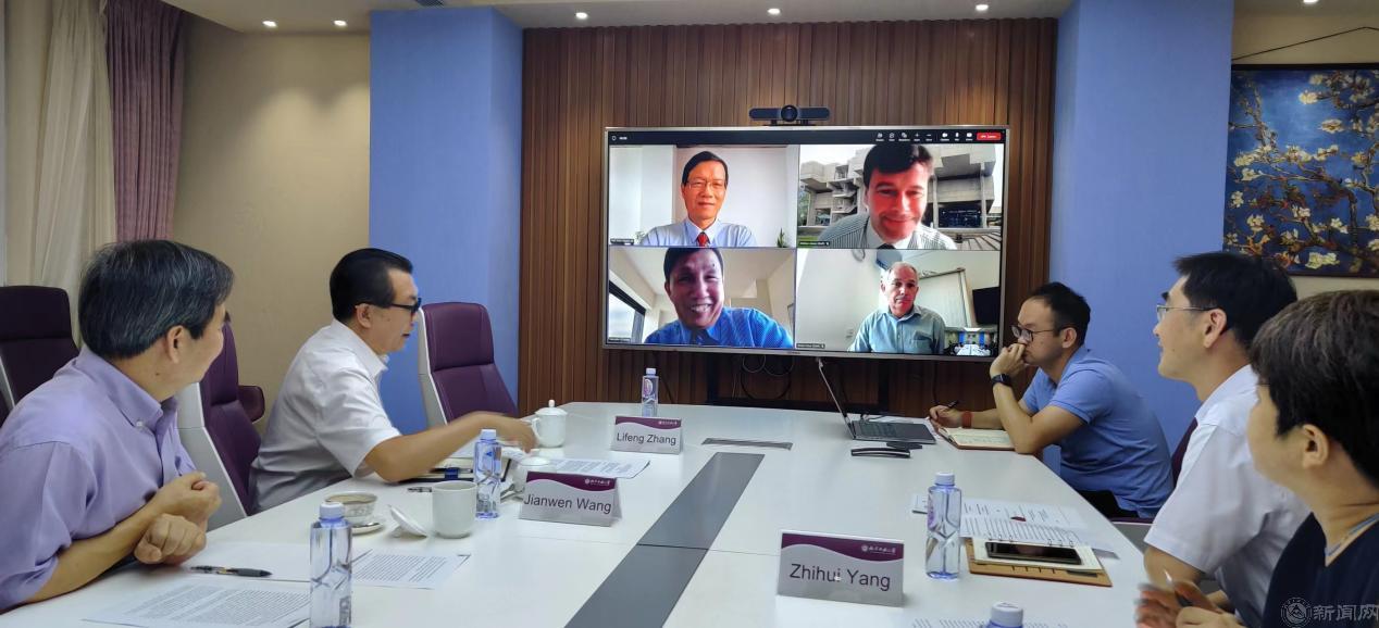 8月19日,公司党委副书记、董事长张立峰与伦敦布鲁内尔大学董事长Andrew Jones教授举行视频会议,双方就进一步深化两校中外合作办学合作、拓展人才培养专业、探讨研究生层次教育合作,以及建立联合创新研究中心等议题进行深入交流,并就新学期w88win体育官网入口教学运行与对方交换了意见。伦敦布鲁内尔大学主管国际教育副董事长Treovor Hoey教授,副董事长Hua Zhao教授,公司党委常委、副董事长王建稳教授,以及w88win体育官网入口班子成员参加会议。