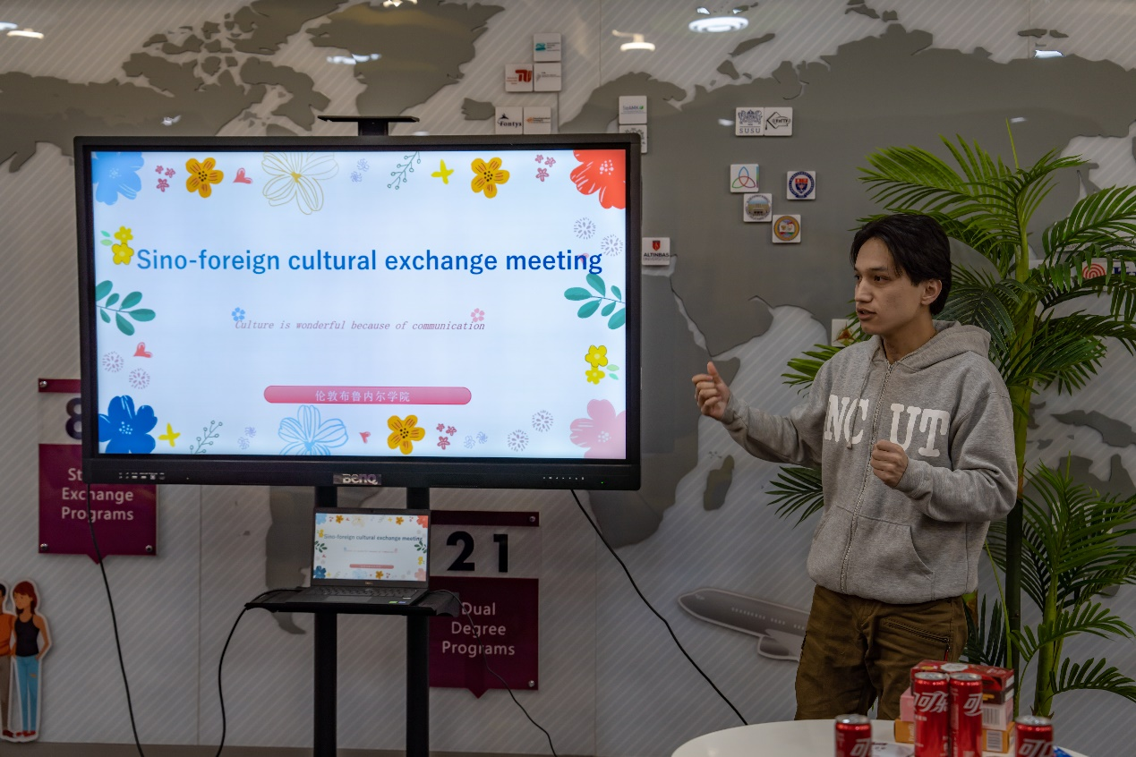 活动的第一个环节是文化交流分享。布院的蒋欣仪与张只沅同学分别介绍了自己的家乡重庆和北京,让职工们了解到当地的地理位置、名胜古迹和文化习俗来自乌兹别克斯坦的Nodirbek同学向大家分享他们国家的重要节日——纳乌鲁兹节及过节习俗,他说道:“本次活动恰逢乌兹别克斯坦当地欢庆纳乌鲁兹节,这个节日标志着春回大地新年伊始,很高兴能在这样的节日结交到新的中国朋友。